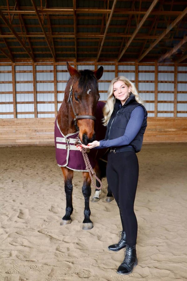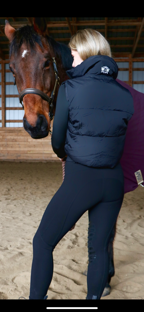 This puffer vest is available in very limited quantities and will look cute in and out of the saddle. Layering it over a long-sleeve top will keep you cozy in cooler weather, and is the perfect edition over a tee on a cooler evening in the summer.